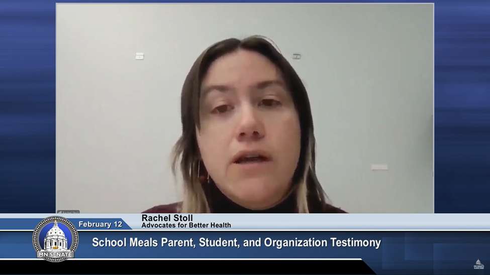 On February 12th, the Senate Education and Finance Committee held an educational hearing on the Free School Meals program, featuring a diverse group of advocates, including farmers, teachers, and educational officials. Advocates for Better Health (ABH) worked to bring forward two key voices: Dr. Diana Cutts, a pediatrician and Chair of Pediatrics at Hennepin Healthcare, and Rachel Stoll, a community health worker and newly elected ABH Board President. Both speakers provided compelling testimony on the significance of the Free School Meals Program in Minnesota.
